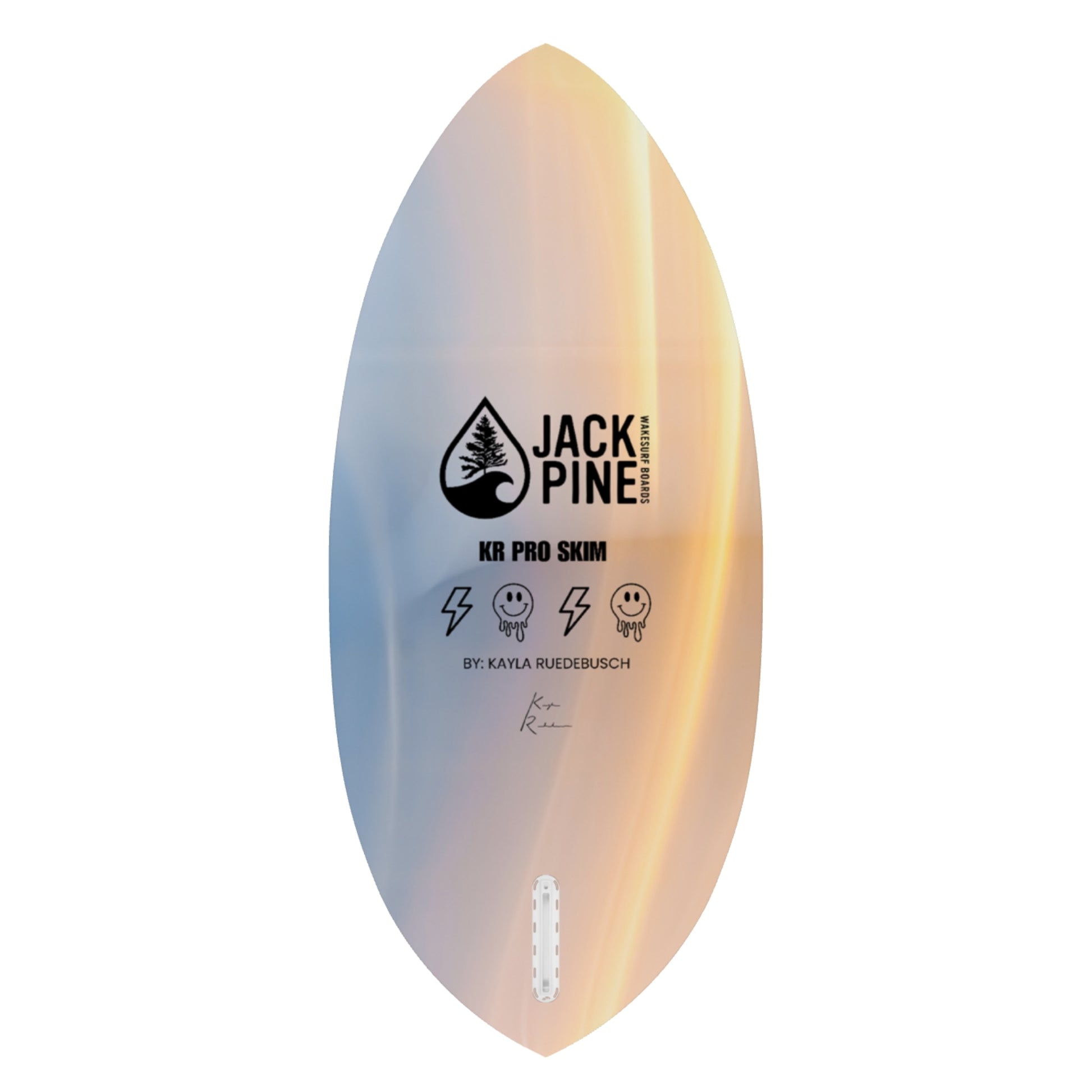 Team rider Kayla Ruedebusch took our small-surfer skim board, the Hatchet, and modified it to take her riding to the next level. Kayla added base channels on the tail of the board and made it a single fin to reduce weight. The KR Pro Skim is available with a traditional wood stringer or a CX carbon fiber stringer. The CX option replaces our standard wood stringer with carbon fiber stringers on both the deck and bottom of the board. This reduces weight and provides a lighter feel underfoot for a responsive and maneuverable ride.